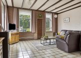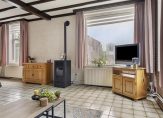 – lichte L-vormige woonkamer (oppervlakte: circa 35 m²) met een tegelvloer en een balkenplafond. Ook treft u in de woonkamer een pellet kachel aan en de meterkast (vernieuwde groepenkast met 7 groepen, een krachtstroomgroep en 2 aardlekschakelaars).