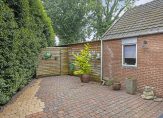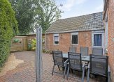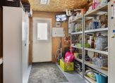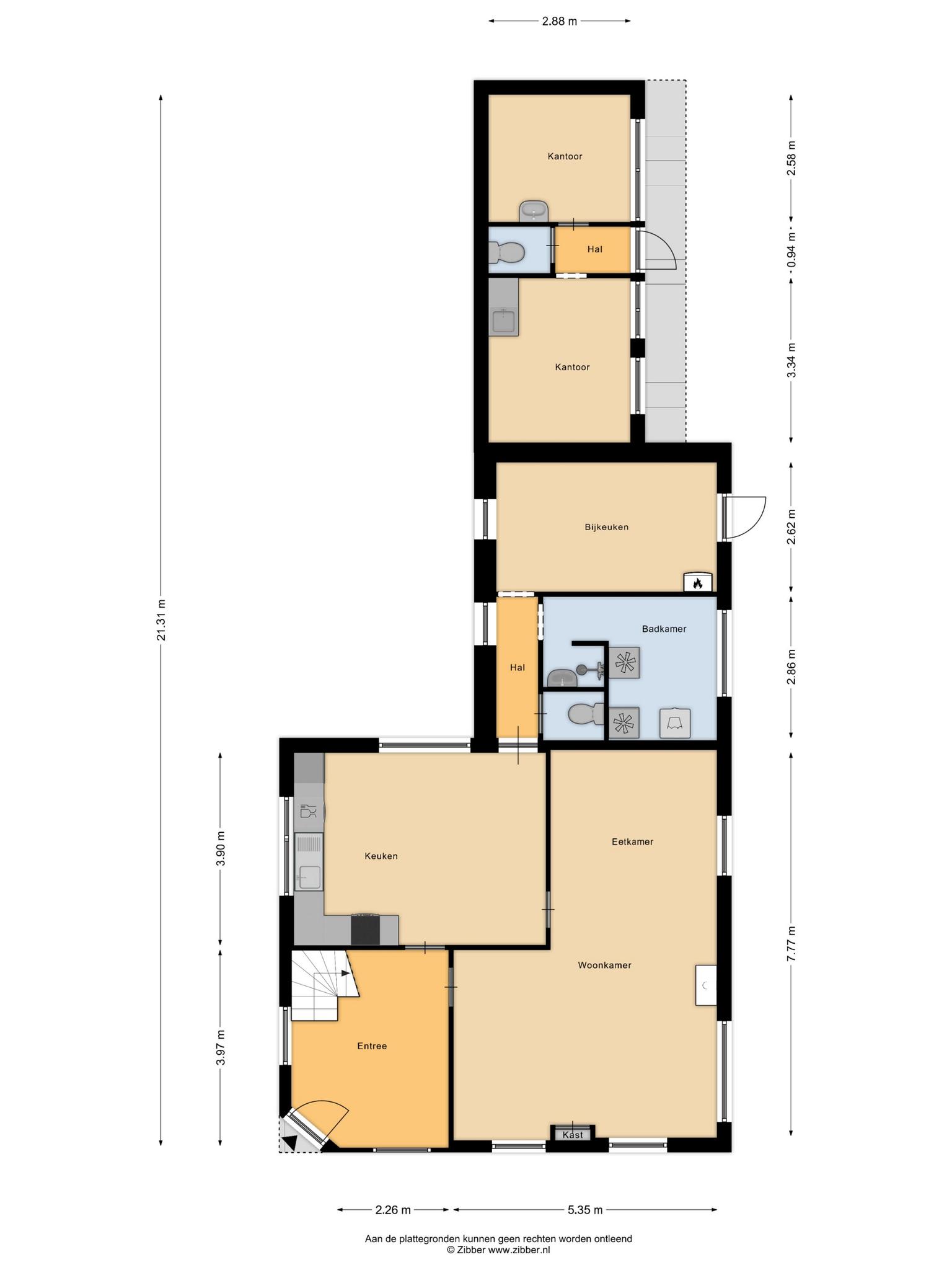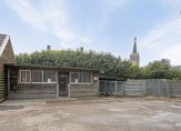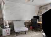 – tegen de achterzijde is een kantoorruimte gebouwd met de volgende indeling: hal, toilet en 2 kantoren, waarvan ƩƩn met een pantry; het betreft een houten constructie, gedekt met damwandprofielplaat; uiteraard is deze ruimte ook bruikbaar voor andere doeleinden; verder is het vrij gemakkelijk te slopen t.b.v. meer tuin.