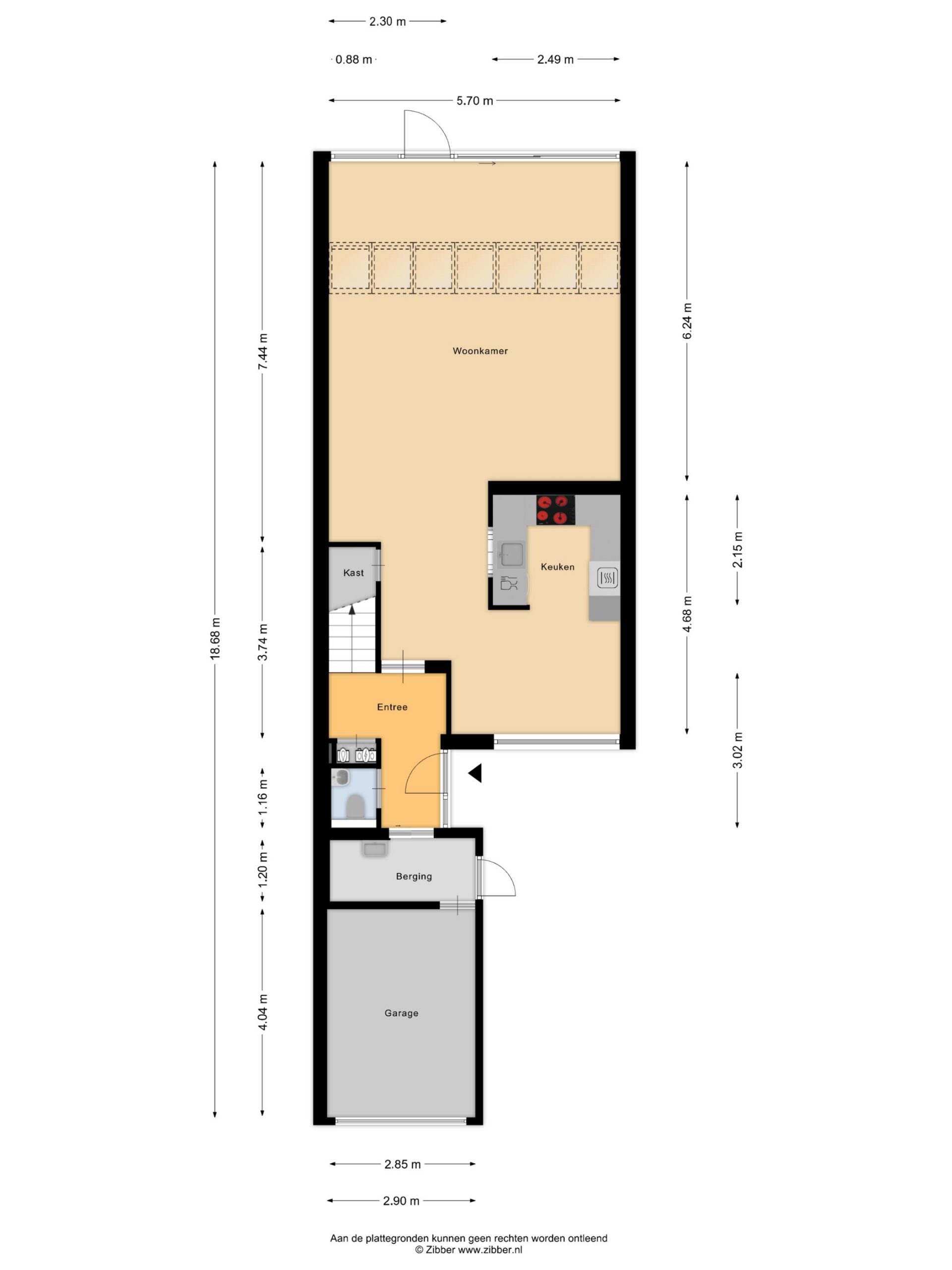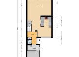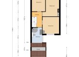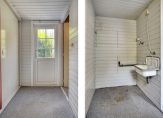 – Bijkeuken/tussenportaal. Hier bevindt zich een uitstortgootsteen, de aansluitingen voor wasapparatuur en een extra loopdeur naar de straatzijde.