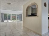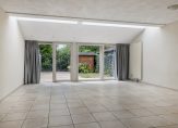 – Een ruime, zeer lichte en, tuingerichte woonkamer (oppervlakte, inclusief half open keuken: circa 59 m²) met een tegelvloer, strak gestukadoord plafond, een wandafwerking met spachtelputz, een fraaie lichtstraat en een royale trapkast. Via de schuifpui heeft u toegang tot de zonnige achtertuin.
