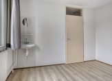 – Slaapkamer 1 (voorzijde, oppervlakte: circa 12 m²) met een laminaatvloer en een vaste wastafel.
