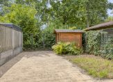 – De achtertuin is volledig vrij gelegen en lligt pal op het Zuiden. De tuin is netjes aangelegd met sierbestrating, een groene border en is voorzien van een praktisch houten tuinhuisje.