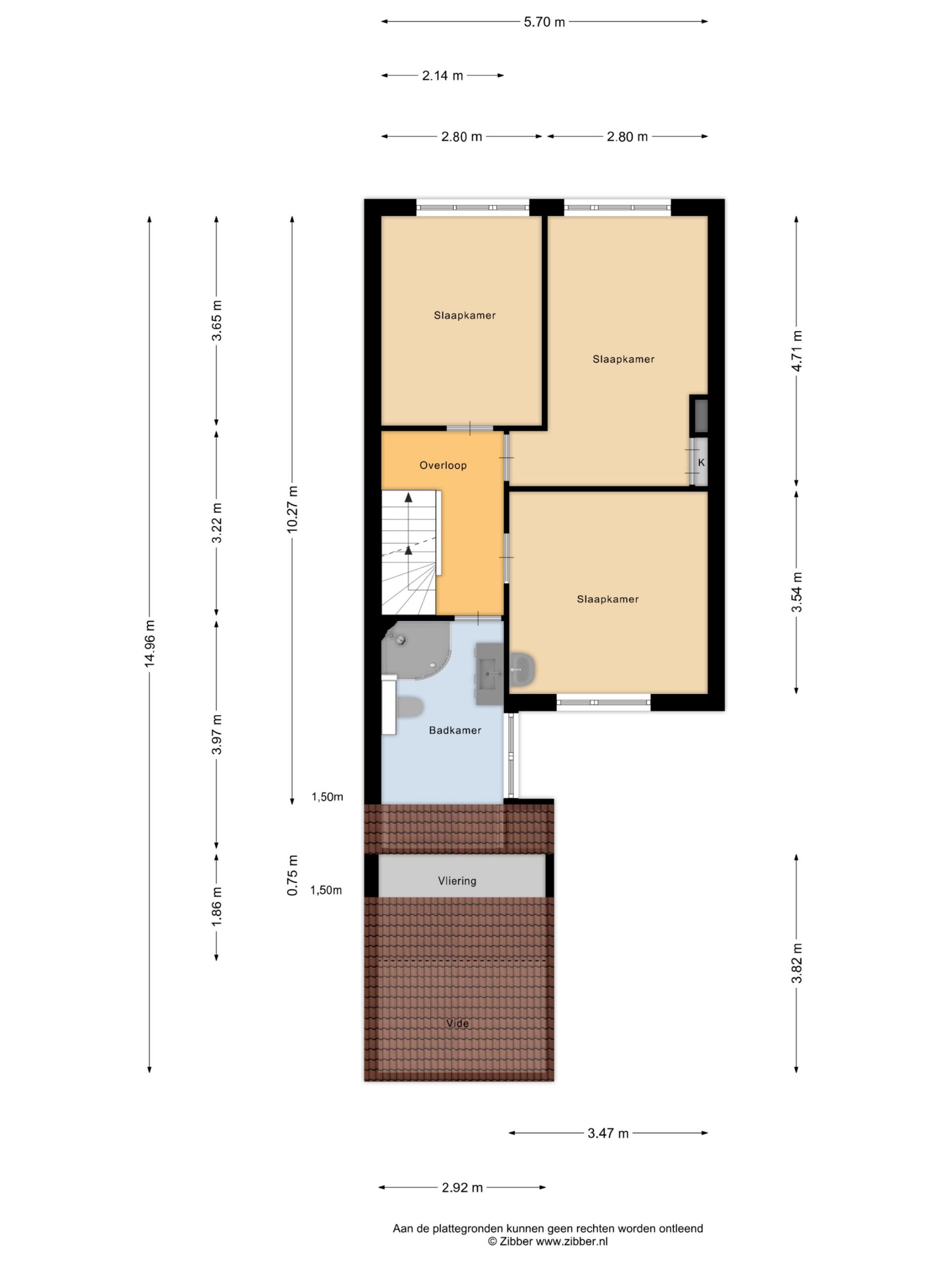 – Slaapkamer 3 (achterzijde, oppervlakte: circa 14 m² ), eveneens met laminaatvloer en een rolluik.