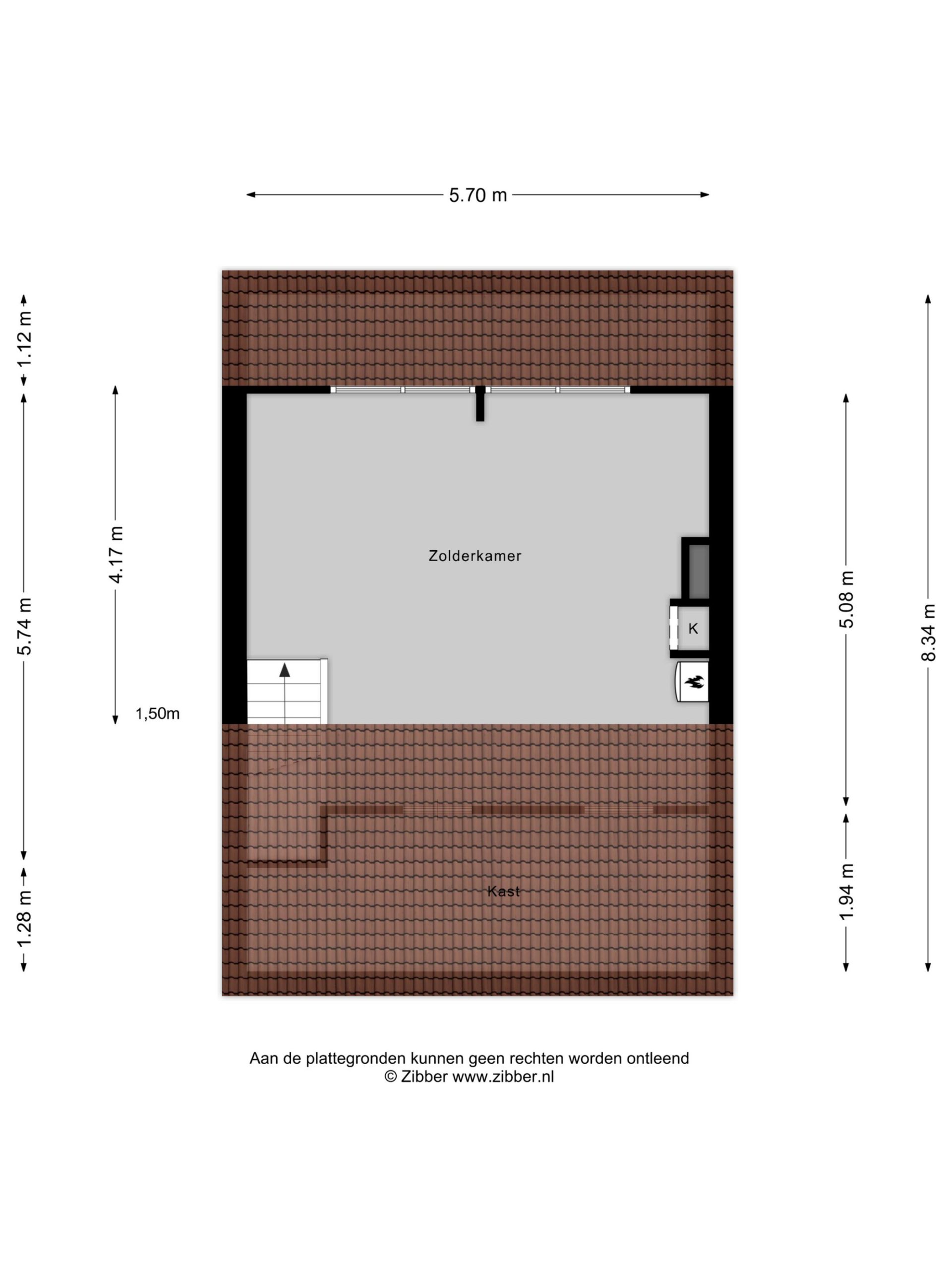 Op deze verdieping bevindt zich de zeer ruime 4e slaapkamer (oppervlakte: circa 24 m²) onder de dakopbouw met o.a. een rolluik. Onder de schuine kap is er veel bergruimte aanwezig. Tevens bevindt zich hier de C.V.-opstelling.