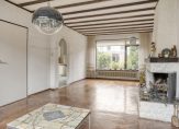– De gezellige woonkamer (oppervlakte: circa 29 m²) is voorzien van een fraaie visgraat parketvloer en een sfeervolle schouw met open haard.