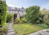 – De achtertuin ligt op het zuidoosten en is ingericht met een terras van grindtegels, een gazon, volwassen beplanting en een achterom naar het achterpad. Er is tevens een ruime vrijstaande stenen berging (afmetingen binnenwerk: 2,50 X 3,99 m¹), voorzien van elektra.