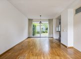 * Gezellige en lichte woonkamer (oppervlakte: circa 29 m²) met een kunststof schuifpui naar de tuin, een fraai eiken strokenparket en een aansluiting op het glasvezelnetwerk.