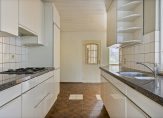 * Ruime halfopen keuken (oppervlakte: circa 10 m²) met een hoogglans inrichting, voorzien van een granieten werkblad, gaskookplaat, vlakscherm afzuigkap en een koel-/vriescombinatie.