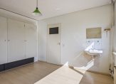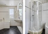 * Geheel betegelde badkamer met wastafel, zitbad, douchecabine en mechanische ventilatie.