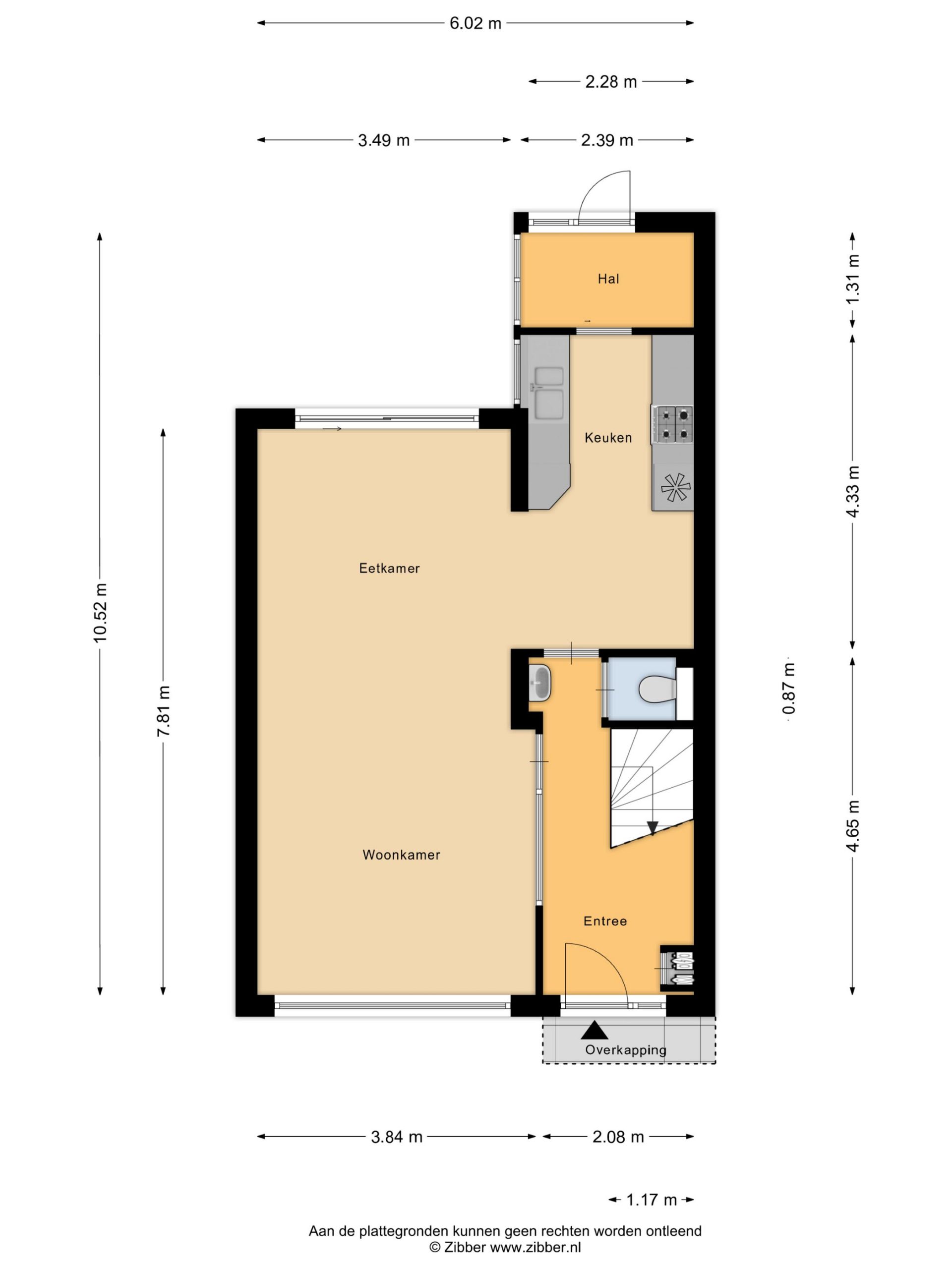 * Overdekte entree/hal met trapopgang naar de 1e verdieping, de meterkast en een fonteintje.