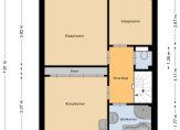 * 2 (slaap-) kamers aan de voorzijde (oppervlakten: respectievelijk circa 5 en 11 m²). Beide kamers zijn voorzien van een laminaatvloer. De grootste kamer is voorzien van een wastafel. Daarboven is een handige vliering voor extra bergruimte.