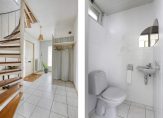– Geheel betegelde toiletruimte met en duoblok en een fonteintje