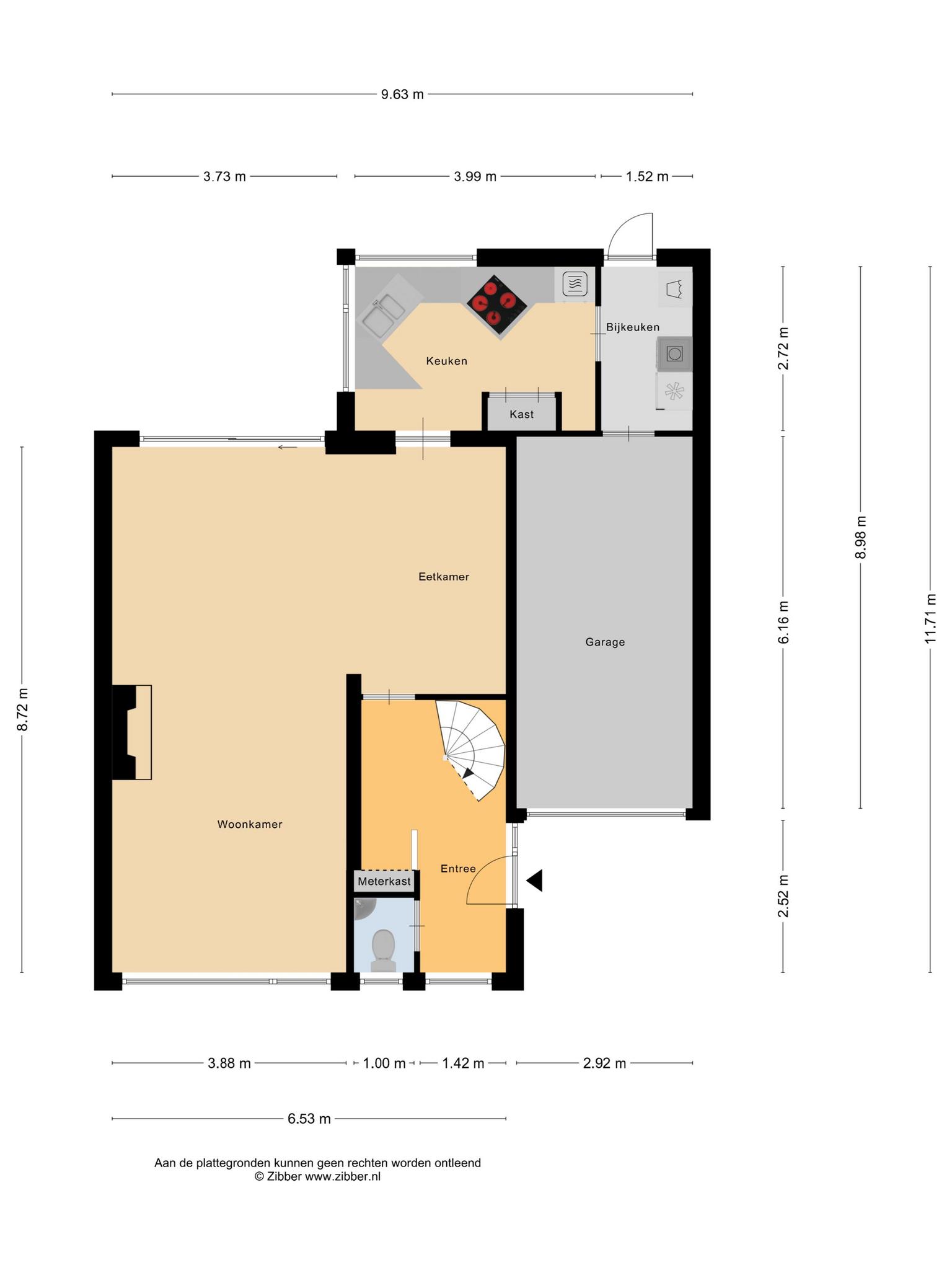 – Entree/hal met de meterkast met o.a. krachtstroomaansluiting, een garderobenis en de trapopgang naar de 1e verdieping;