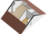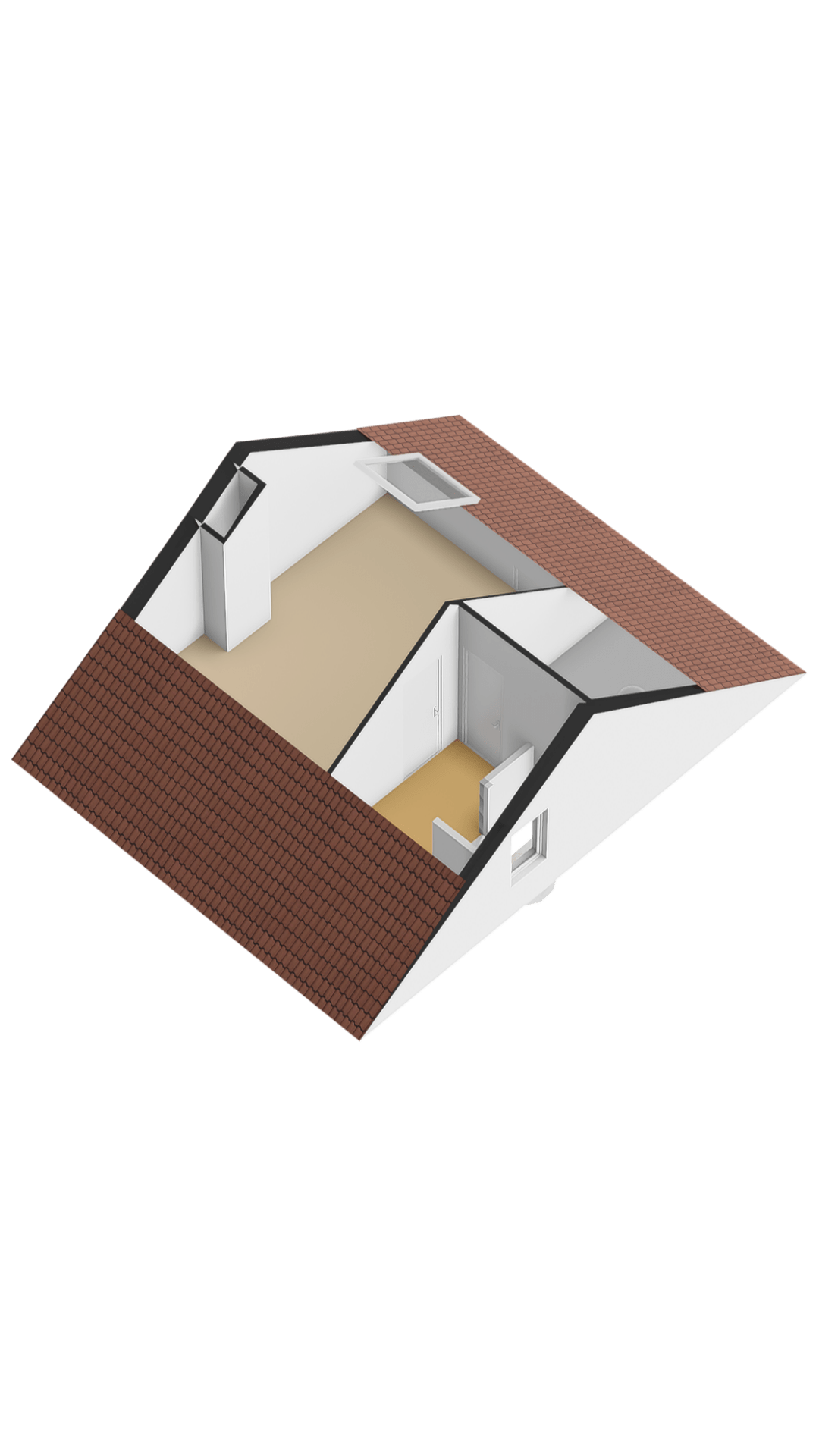 – Ruime zolderkamer (oppervlakte: circa 19 m²) met een dakraam, wastafel en veel bergruimte in de kapschuinte.