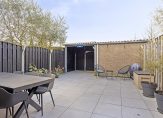 – Verzorgde achtertuin met een overkapte achterom naar het buurpad.