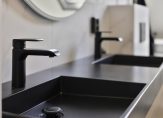 – Luxe toiletruimte met een hangend closet en een fonteintje.