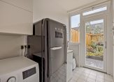 – bijkeuken, voorzien van een tegelvloer, uitstortgootsteen, de aansluitingen voor de wasapparatuur, designradiator en een loopdeur naar de achtertuin.