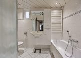 – luxe en geheel betegelde badkamer, voorzien van een ligbad, douchecabine, een wastafelmeubel met spiegelwand, een wandcloset en een designradiator.