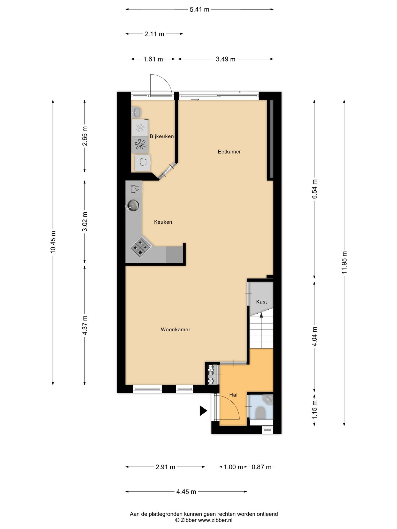 – entree/hal met de meterkast en de trapopgang naar de 1e verdieping;