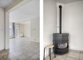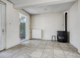 – Ruime, Z-vormige woonkamer (oppervlakte: circa 39 m²) met een verwarmde tegelvloer, gestukadoorde wanden en plafonds, en een gezellige gaskachel. Dankzij de grote raampartijen en schuifpui naar de achtertuin is er veel natuurlijke lichtinval.
