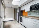– De halfopen keuken (oppervlakte: circa 15 m²) beschikt over een praktische inbouwkast en de meterkast (8 groepen en een aardlekschakelaar) De luxe inrichting in hoekopstelling is voorzien van een oven, 5-pits gaskookplaat met wokbrander, vlakscherm afzuigkap, koelkast met vriesvak, apothekerskast, aparte magnetron en diverse onder- en bovenkasten. Boven de keuken is een lichtstraat die zorgt voor extra lichtinval. Tevens is er een vast ontbijttafeltje en een loopdeur naar de woonkamer.
