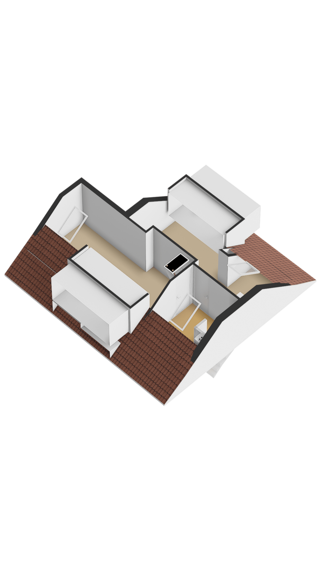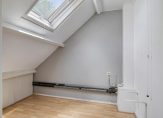 – Riante slaapkamer aan de voorzijde (oppervlakte: circa 13 m²) onder de dakkapel met laminaatvloer en veel bergruimte in de kapschuinte.