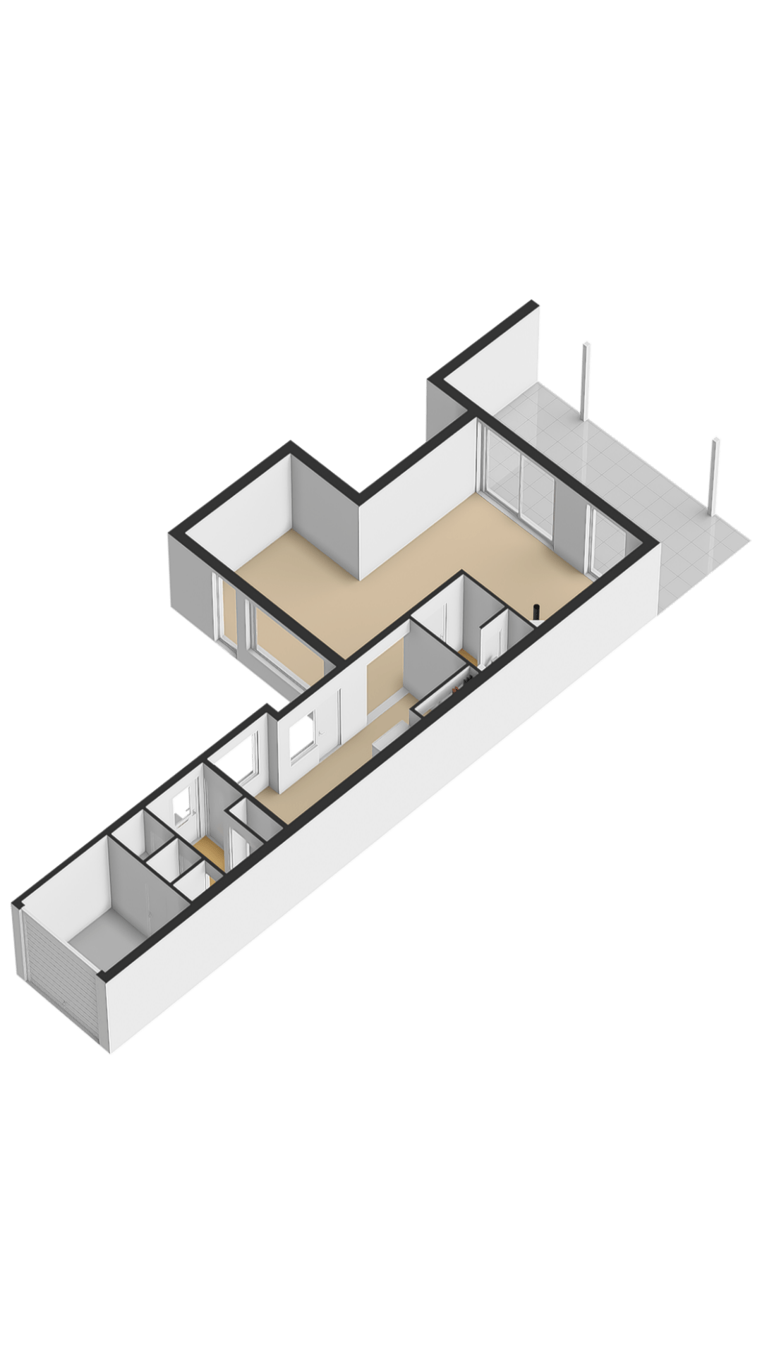 – Zeer ruime slaapkamer aan de achterzijde (oppervlakte: circa 30 m²) met laminaatvloer, een vaste kastenwand en toegang tot het balkon. Dit waren voorheen 2 kamers. De oorspronkelijke indeling is gemakkelijk weer terug te brengen.